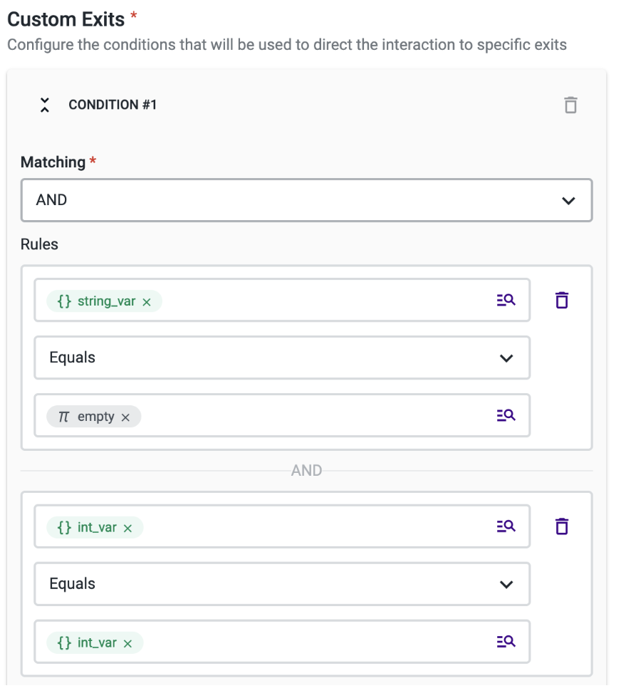 Matching: Choose Any or All, to define whether the exit will be met based on a single condition or on all listed conditions.