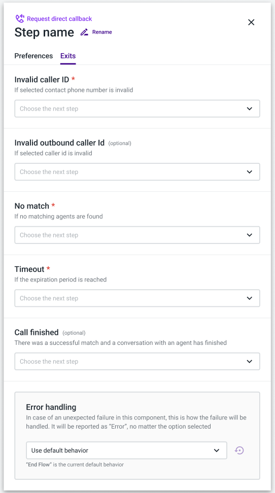 Exits for the "Request callback from queue” component can be configured in the following scenarios: