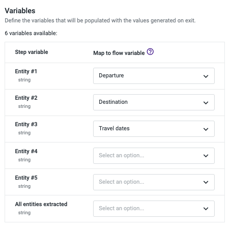 Each entity can then be mapped to Studio variables, so they can be reused throughout the flow, such as for routing, automation, agent context, or reporting.